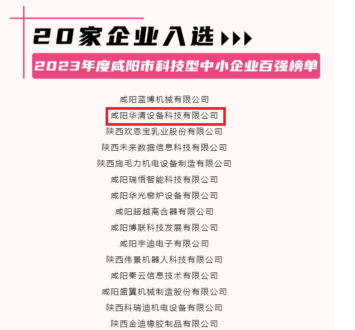 熱烈祝賀咸陽華清設(shè)備科技有限公司榮獲2023年度咸陽市科...